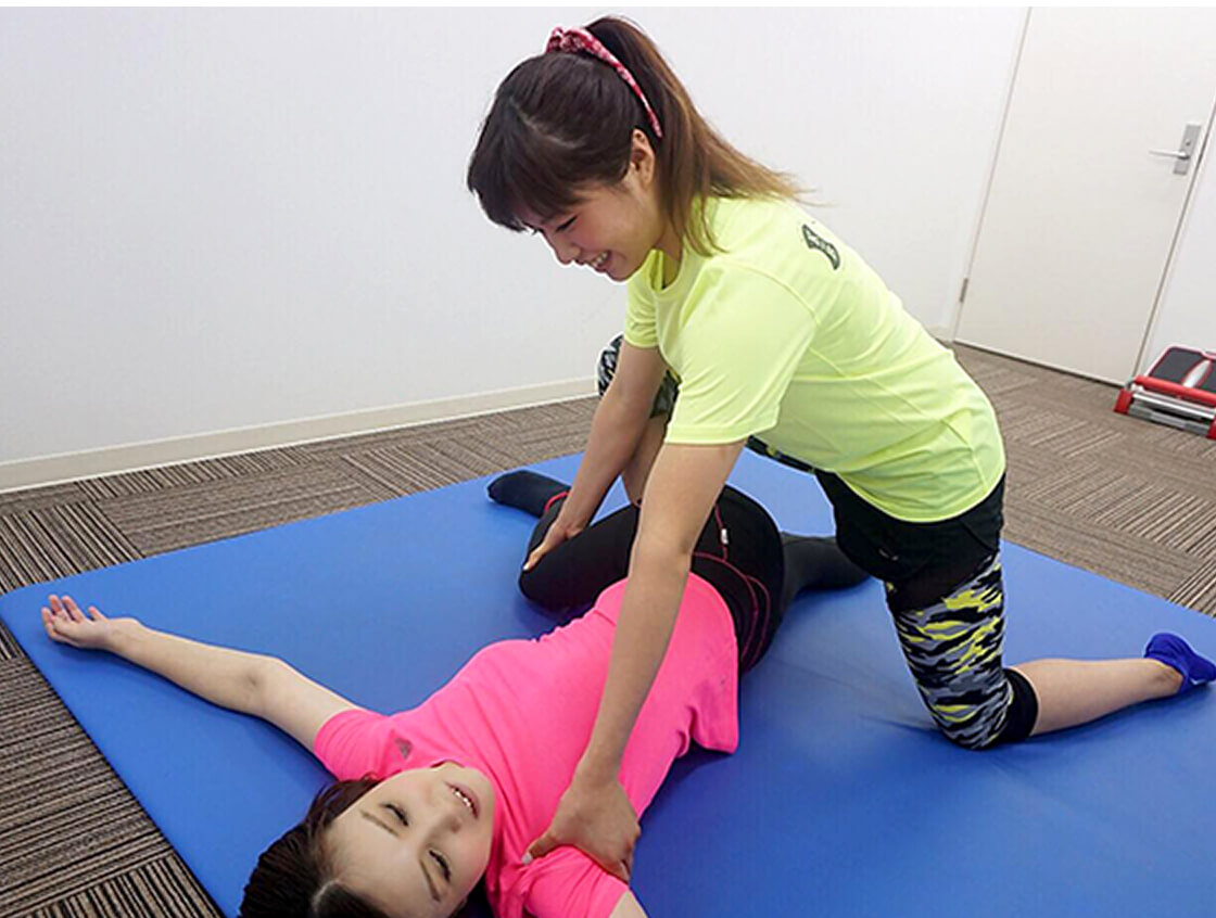 くびれ美人のパーソナルトレーニングは、個室でのトレーニングだけでなく、お客様に寄り添って一緒に課題をクリアしていきます。