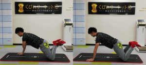 つま先を立てた状態では強度が強いため、膝をつけた状態で行ってみましょう。