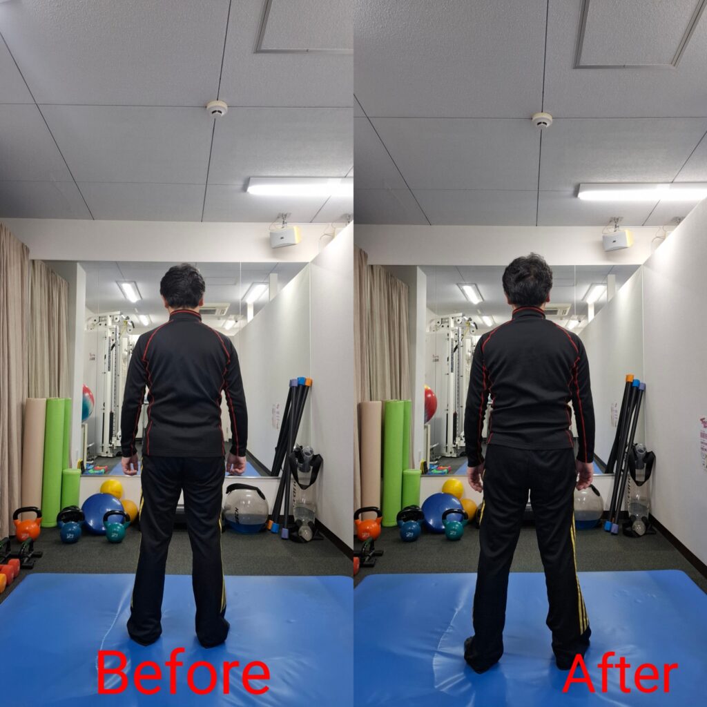 60代男性がパーソナルトレーニング初体験にご来店されました。1回でもある程度は変化しますが、続けることで定着していきます。